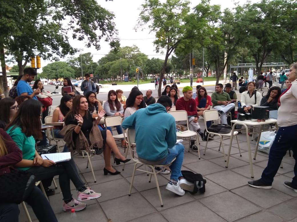 La decana de la Facultad de Humanidades, Mgter. Patricia Breppe, participó esta tarde de una clase pública convocada por alumnos de Ciencias de la Educación, que vienen solicitando la construcción de aulas exclusivas para esa facultad, así como mejoras edilicias.