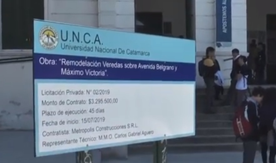 El edil sostuvo que al compararlo con los precios que le cobran al municipio para obras similares, el monto que paga la UNCa es casi el doble. “La inquietud es el precio del metro cuadrado que se está pagando en la obra de vereda de la UNCa. La Municipalidad por una obra similar está pagando aproximadamente $800 el metro cuadrado y, en esta licitación de la obra de la UNCa, por un valor total de obra de $3.200.000. Estamos diciendo que el metro cuadrado le está costando a la UNCa $1.500 pesos aproximadamente, lo que es llamativo que una obra tan simple tenga un monto tan elevado.