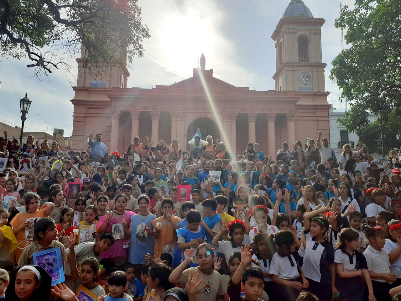 Acompañados por sus papás, abuelos y docentes, junto con miembros y el asesor de la Pastoral de la Niñez, Pbro. Santiago Granillo, los chicos alabaron a la Madre del Valle con cantos, vivas y aplausos.