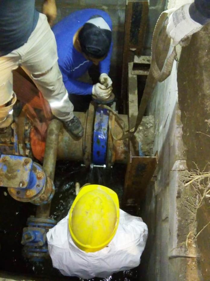 Esta tarea permitirá habilitar el servicio en la zona sur de la ciudad, afectada por la rotura del caño de impulsión del pozo 55 en el cauce de Rio del Valle.