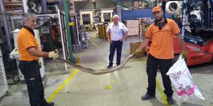 Hoy devolvieron a su hábitat natural una Lampalagua que se encontraba en la fábrica Longvie personal de Defensa Civil Catamarca, tras ser capturada en una de las fábricas del sector sur este. La boa, -de 2 mts.-, estaba sobre el montaje de una de las máquinas del lugar.