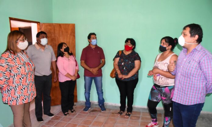 El Intendente Sebastián Nóblega encabezó la visita y la entrega del mejoramiento de la vivienda y lo hizo en compañía de la Secretaria de Desarrollo y Hábitat Social Viviana Cortéz, el presidente del Concejo Deliberante, Pedro Chaile y las Concejalas Florencia Casimiro, María Chaile y el delegado municipal Sergio Yapura.