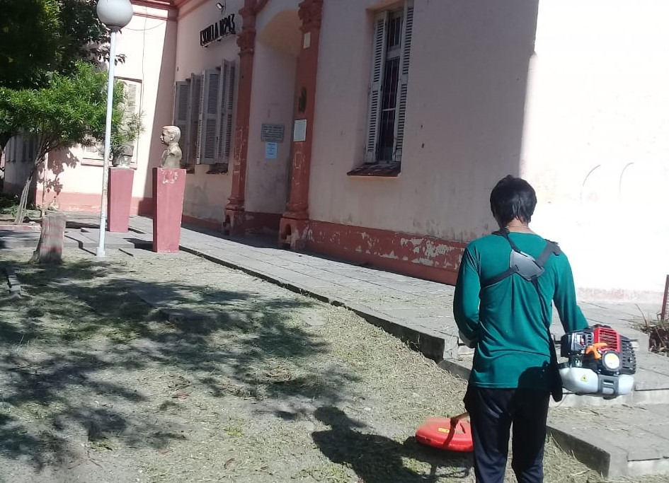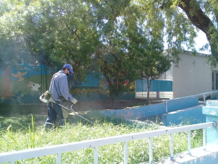 El Ministerio de Educación, a través de la Dirección de Programación y Mantenimiento Edilicio continúa su recorrido por los distintos establecimientos educativos realizando trabajos de desmalezamiento y limpieza de las escuelas.