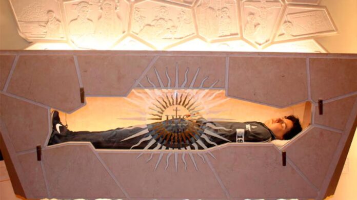 El cuerpo del nuevo santo permanece expuesto en una tumba de cristal en el Santuario de la Expoliación de Asís, con una máscara de silicona y una capa de cera que cubren su rostro y sus manos para preservar la imagen.