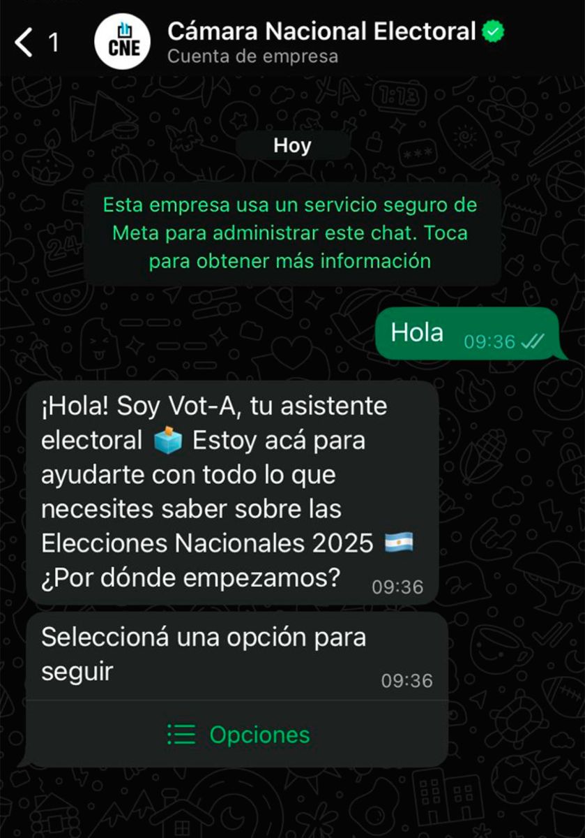 También se encuentra disponible el chatbot en WhatsApp “Vot-A” para resolver las dudas en torno al proceso electoral de este año. Se trata de una herramienta que brinda información veraz y dinámica a los electores para prevenir la desinformación y aportar al voto informado.