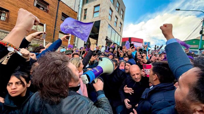 Javier Milei no pudo realizar con normalidad el acto de campaña que tenía previsto en Ushuaia, Tierra del Fuego, debido a protestas en su contra que se organizaron en las zonas aledañas a donde estaba planeada la actividad.