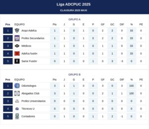 A su vez, Abogados y Odontólogos B no se sacaron ventaja e igualaron 0 a 0.