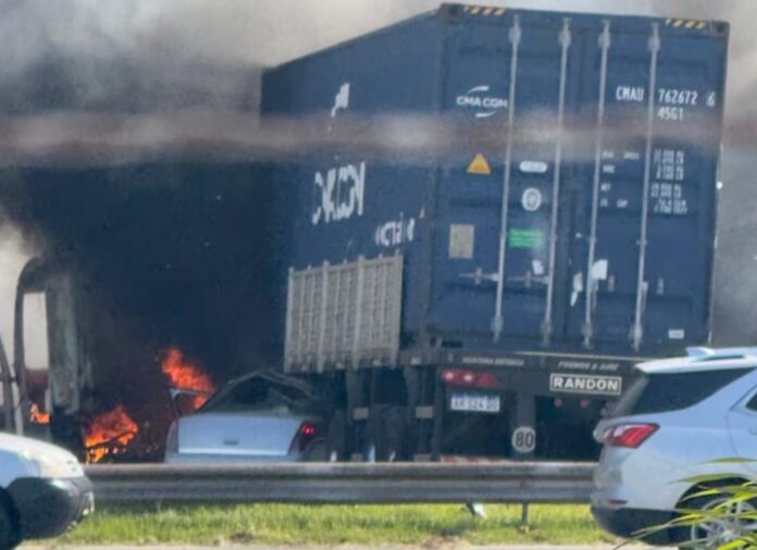 “Las imágenes son terribles. Se ven las dos cabinas de los camiones completamente carbonizadas y el utilitario debajo de ellos. Los ocupantes murieron en el acto”, describió Costichi desde el lugar del hecho.