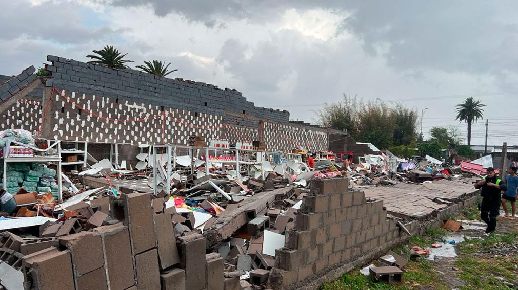 De acuerdo con fuentes policiales, una de las paredes laterales del comercio colapsó producto de la violencia del temporal, lo que generó un gran revuelo en la zona. Minutos después del siniestro, se registraron intentos de saqueo por parte de un grupo de personas que se acercó al lugar.