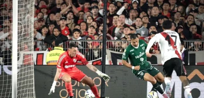 En una muy floja actuación, River Plate cayó 1-0 frente a Sarmiento de Junín en partido por la fecha 12 del Torneo Clausura 2025. A los 30 minutos, “El Verdolaga» abrió el marcador del estadio Monumental. Iván Morales Bravo aprovechó un rebote dentro del área chica, pasó la pelota por debajo de las piernas de Franco Armani y terminó en el fondo de la red.