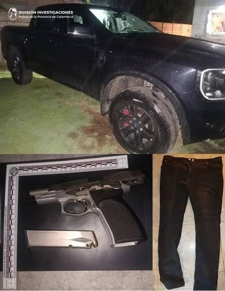 En el lugar y bajo las directivas del Juzgado de Control de Garantías N° 1, a cargo del Dr. Santiago Ahumada Franzzini, los investigadores secuestraron una prenda de vestir, una camioneta Ford Ranger negra, una pistola Bersa 9 mm., con su respectivo cargador y ocho cartuchos.