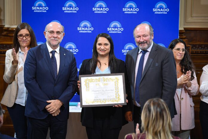 El encargado de entregar las distinciones fue el Senador Daniel Kroneberger, presidente de la Comisión de Asuntos Administrativos y Municipales en el salón Illía del Congreso, quien fue acompañado durante la ceremonia entrega de reconocimientos por el senador catamarqueño Flavio Fama, además de otros senadores del país.