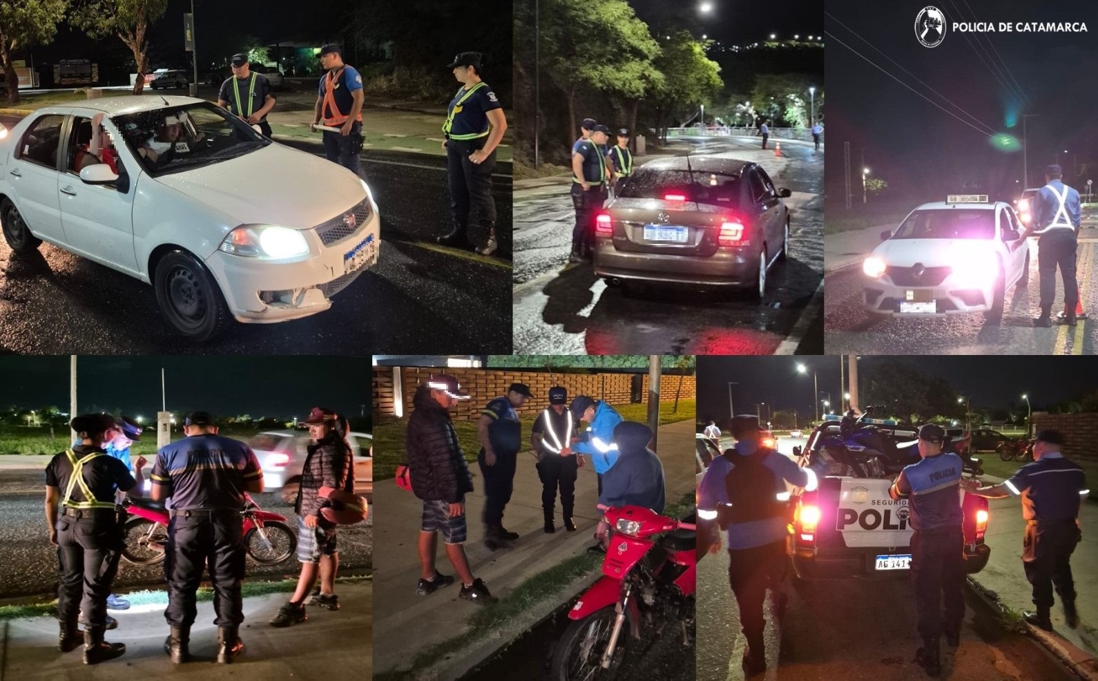 Al finalizar los procedimientos, los uniformados secuestraron un total de 45 vehículos, entre motocicletas y automóviles; once de ellos porque sus conductores manejaban con alcohol en sangre -es decir por alcoholemia positiva- y arrestaron a ocho personas, todos ellos varones, de apellidos Villagra (28), Cobacho (20), Acuña (18), Zambrano (31), Ortiz (55), Purulla (23), Luna (23) y Espinosa (19), por violar el Código de Faltas de la Provincia.