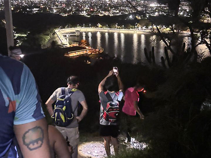 La caminata inició desde la plazoleta de Combatientes de Incendios Forestales, recorriendo el perilago y ascendiendo hasta la cima de la montaña. Durante el trayecto, los participantes pudieron disfrutar de una experiencia única, observando la ciudad iluminada por la luna llena. El grupo se mostró muy satisfecho y emocionado por la vivencia.