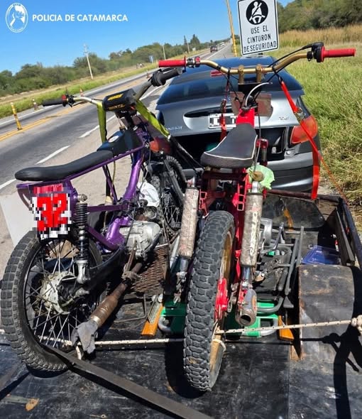 Ayer, mientras efectivos de la Dirección Seguridad Vial realizaban control vehicular e identificación de personas en el Puesto Caminero de Nueva Coneta, situado en la Ruta Nacional N° 38, controlaron a un joven de 24 años de edad, quien circulaba en automóvil Peugeot 206, de color gris, remolcando un carro con dos (02) motocicletas de competición y notaron que las mismas carecían de la documentación.